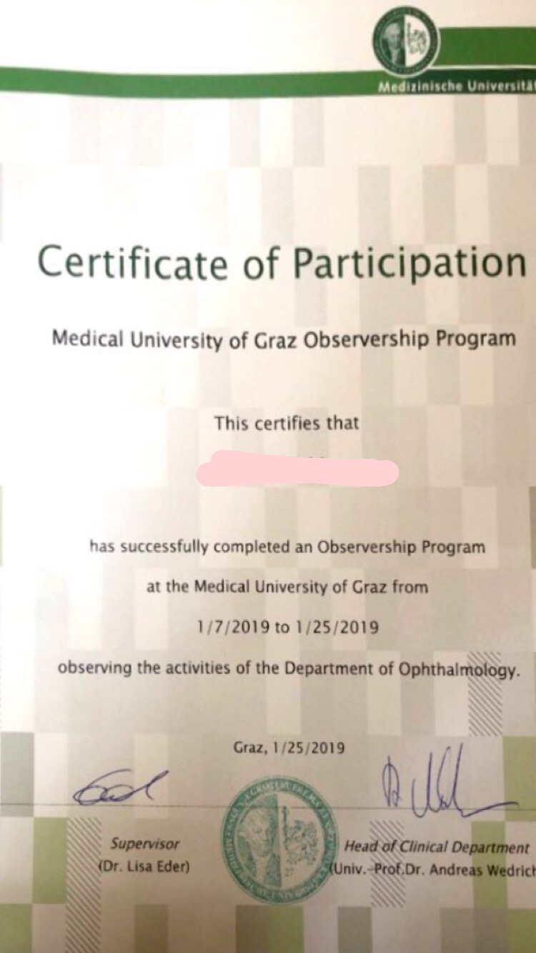 의대협의 SCOPE(임상실습 교환학생 프로그램)를 통해서 오스트리아의 그라츠 대학병원 안과에서 1달간 임상실습을 했다.